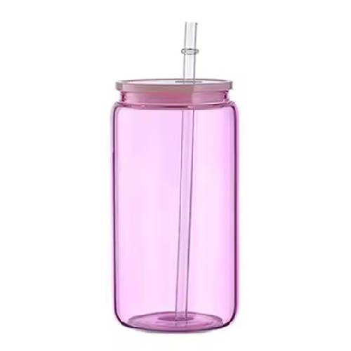 Light Pink 16oz Glass Can with Straw
