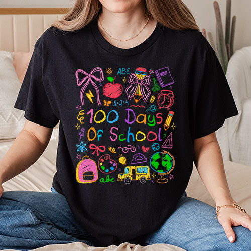 Home :: DTF :: Press Ready Transfers :: Press Ready Transfer - 100 Days of School Chalk Art