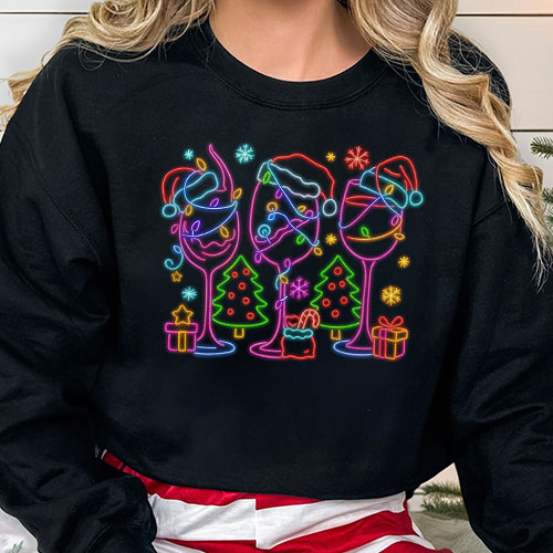 Home :: DTF :: Press Ready Transfers :: Press Ready Transfer - Neon Wine Glasses