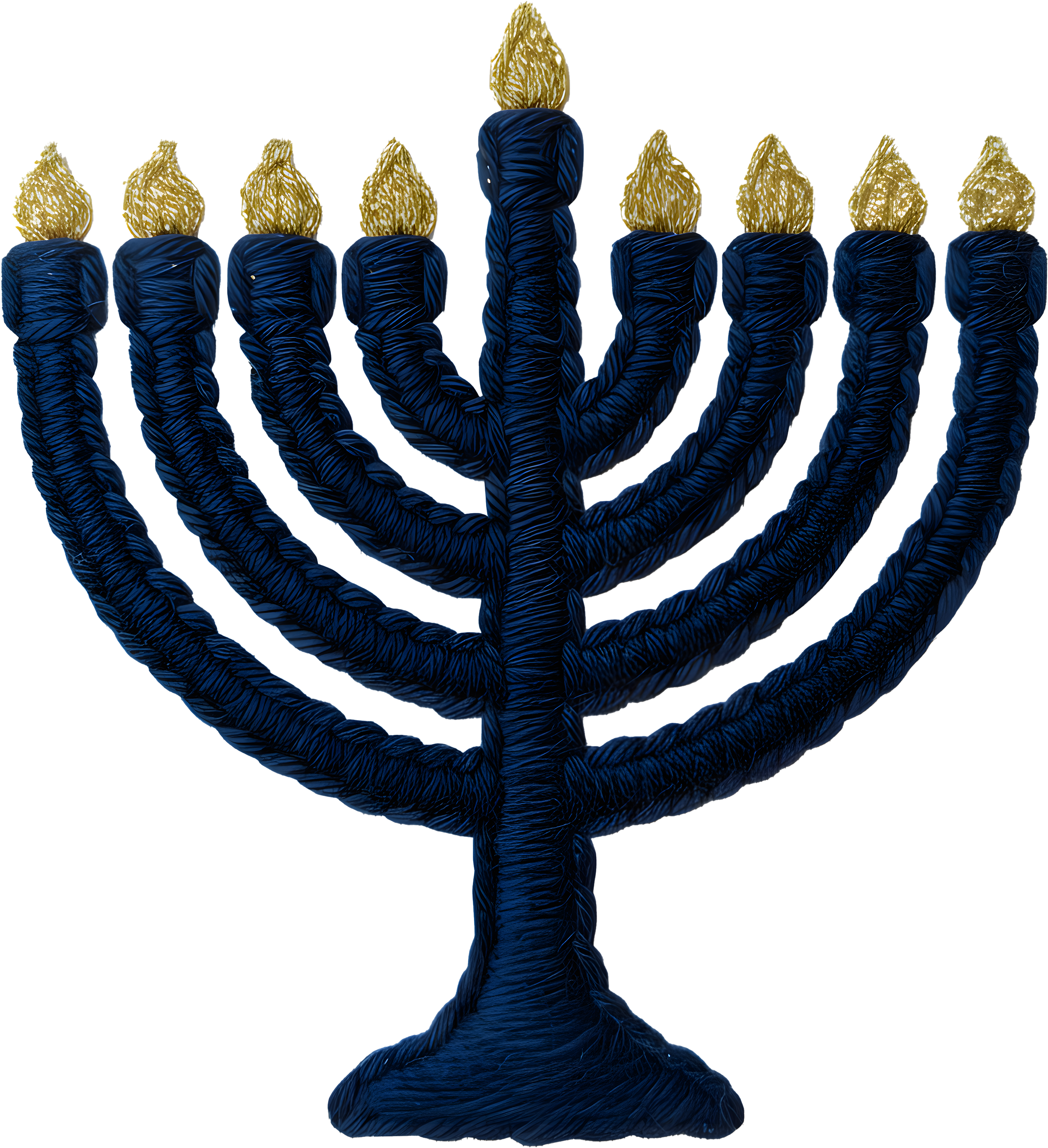 This image features a gorgeous, dimensional Menorah crafted entirely from rich, deep blue yarn . The yarn is carefully wound and shaped to create the traditional nine branches and base.