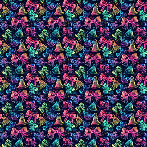 Home :: HTV :: Printed Pattern HTV :: Seasonal :: Printed HTV - Neon Bells and Bows Print 12" x 15" Sheet